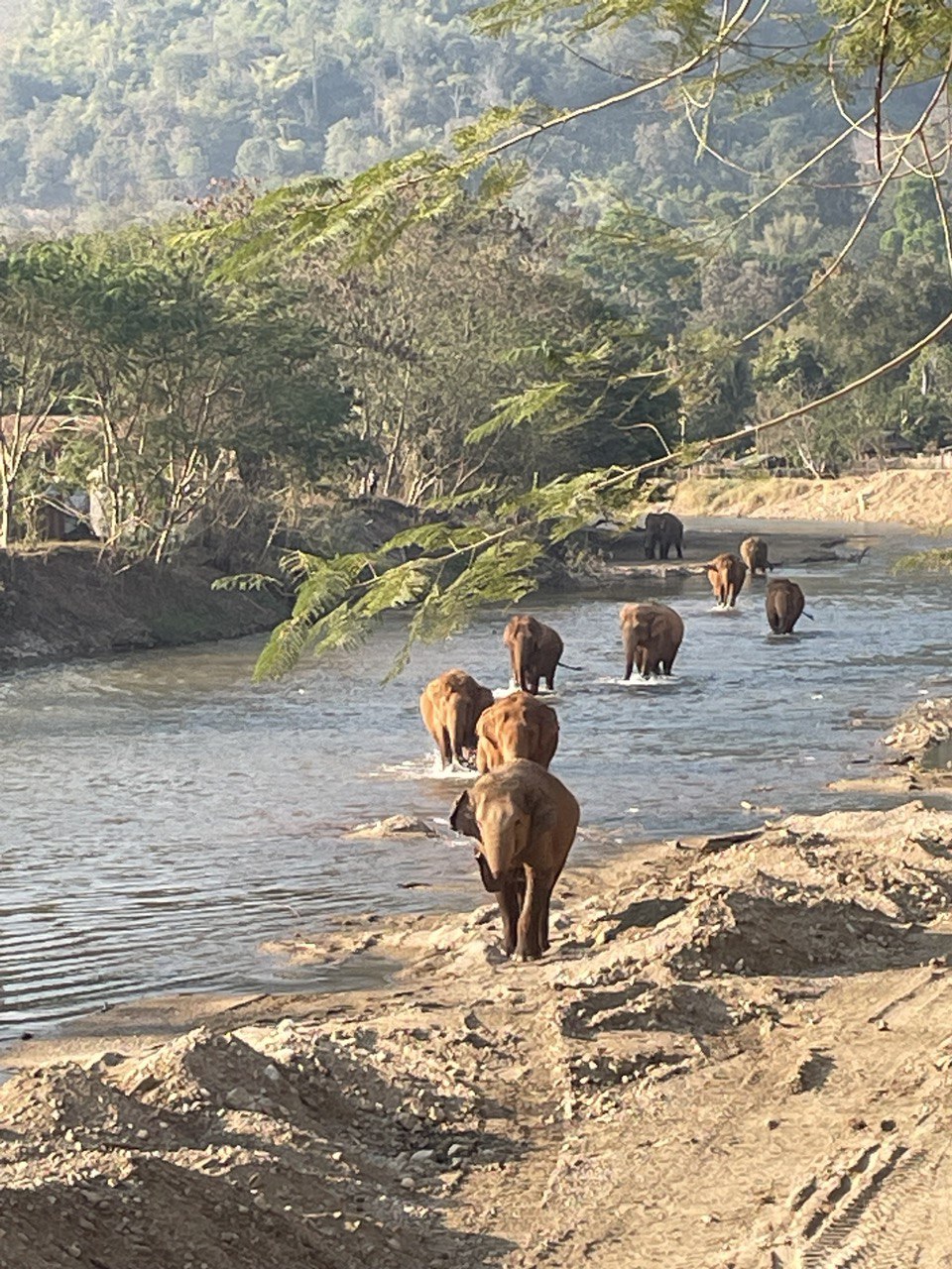 We checked into our hotel room and it is very nice. So much for basic accommodations! We think they must have done some upgrades during COVID. Then we went to the area where they have the rescued dogs. Apparently there are about 600 dogs here. We walked along all the kennels, and eventually saw a volunteer who asked us if we wanted to see puppies to which we replied “obviously??”. We got to play with around 25 puppies which was so fun. We stopped around 4:30pm because we were told it’s quite something to “see the elephants come in” whatever that means. No one gives us very detailed schedule information around here.